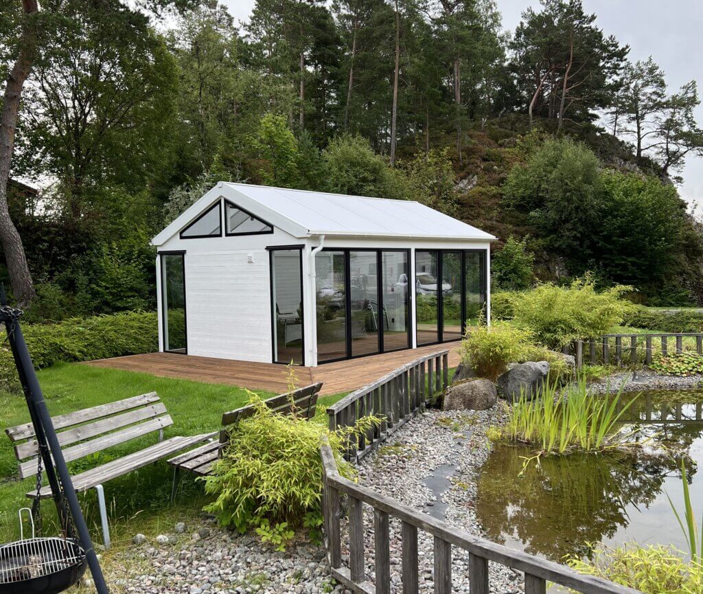 Utvendig bygges oppvarmet orangeri med innlagt vann.